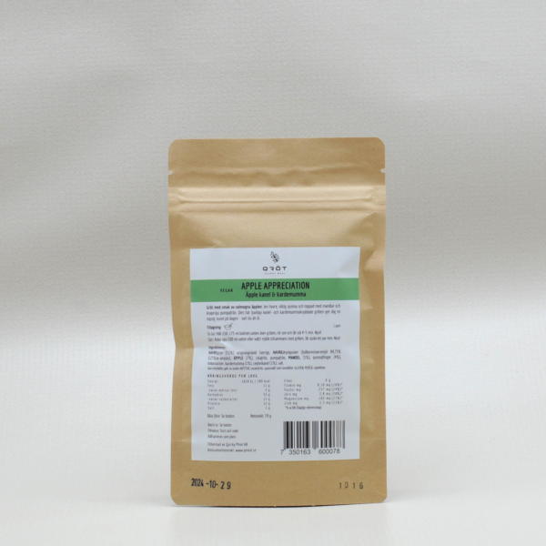 Ingredienser: Glutenfritt HAVREMJÖL, Kokosblomsocker, JORDNÖTSSMÖR (12,5%), Kakaosmör, Kokosolja, Risirispulver, Risirap, glutenfritt havrepulver, Kakaomassa, MANDEL, Havssalt.