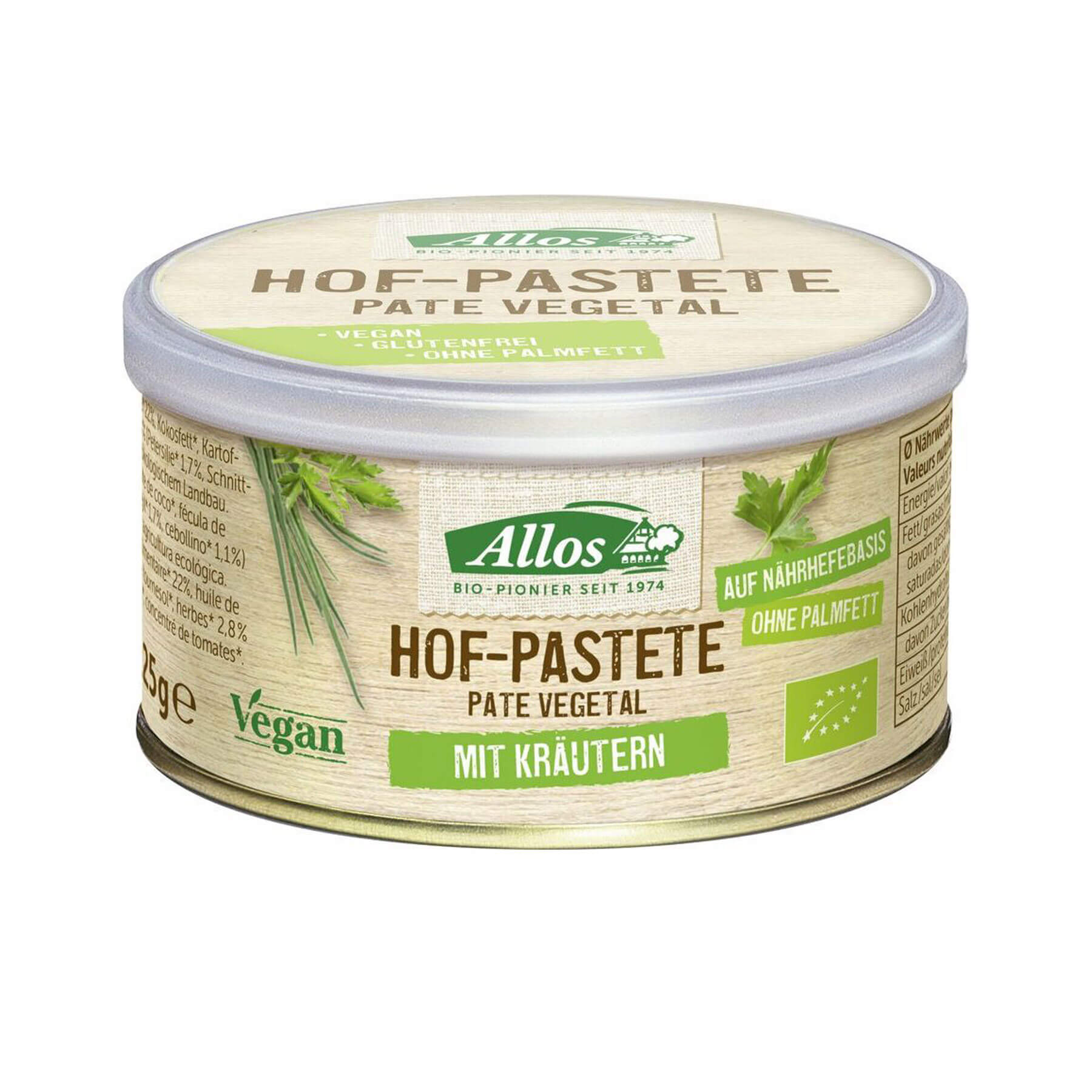 Vatten, näringsjäst* (22%), kokosfett*, potatisstärkelse*, vegetabiliskt protein* (från solrosfrön*), örter* (2,8%) (persilja* (1,7%), gräslök* (1) ,1%)), purjolök*, havssalt, solrosolja*, tomatpuré. *certifierad ekologiskt odlad