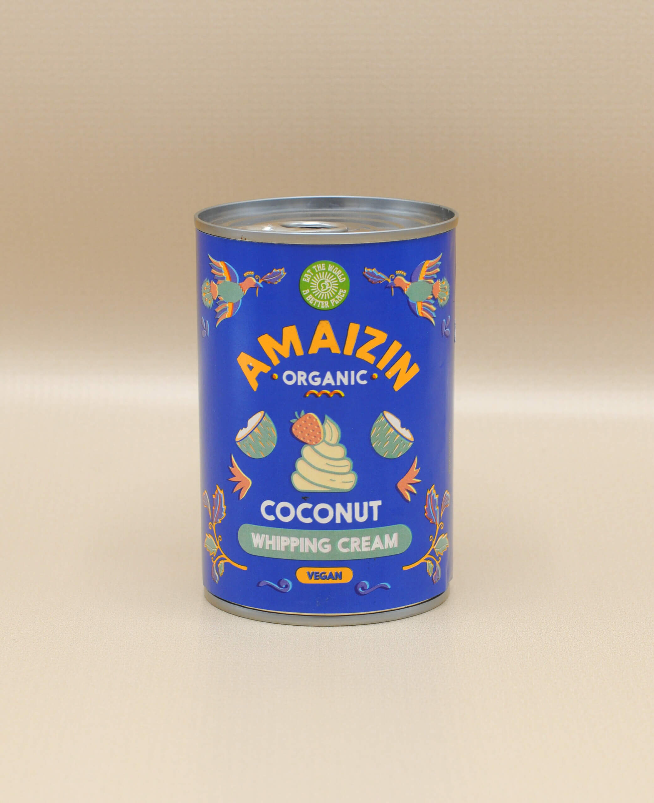 Med Amaizin Coconut Whipping Cream har du vegansk vispad grädde direkt. Förvara burken i kylskåpet över natten, sedan vispa i en skål!