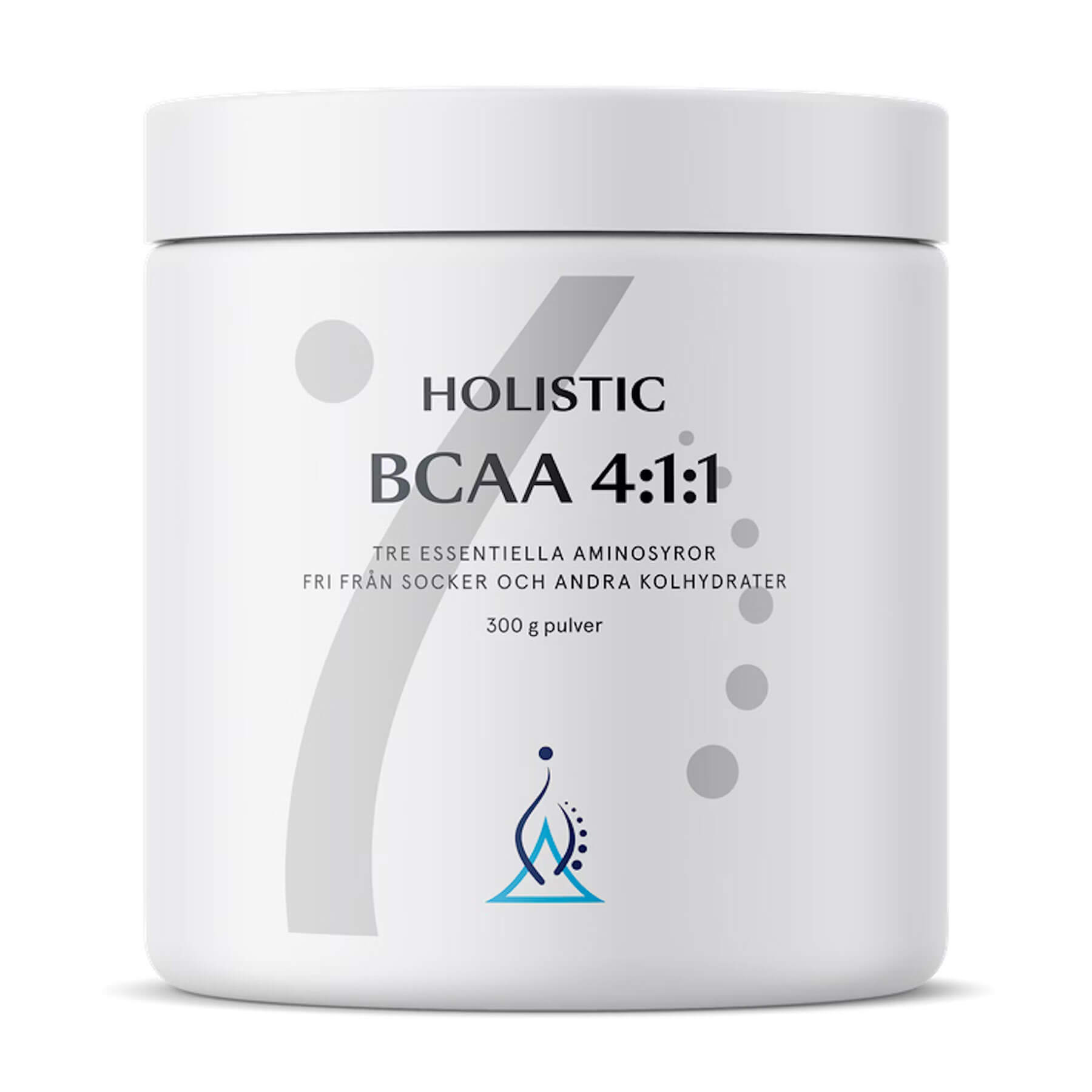 Vår BCAA består av de essentiella aminosyrorna L-leucin, L-isoleucin och L-valin i förhållandet 4:1:1, med hög halt av L-leucin. Holistic BCAA 4:1:1 är helt fri från socker och andra kolhydrater.