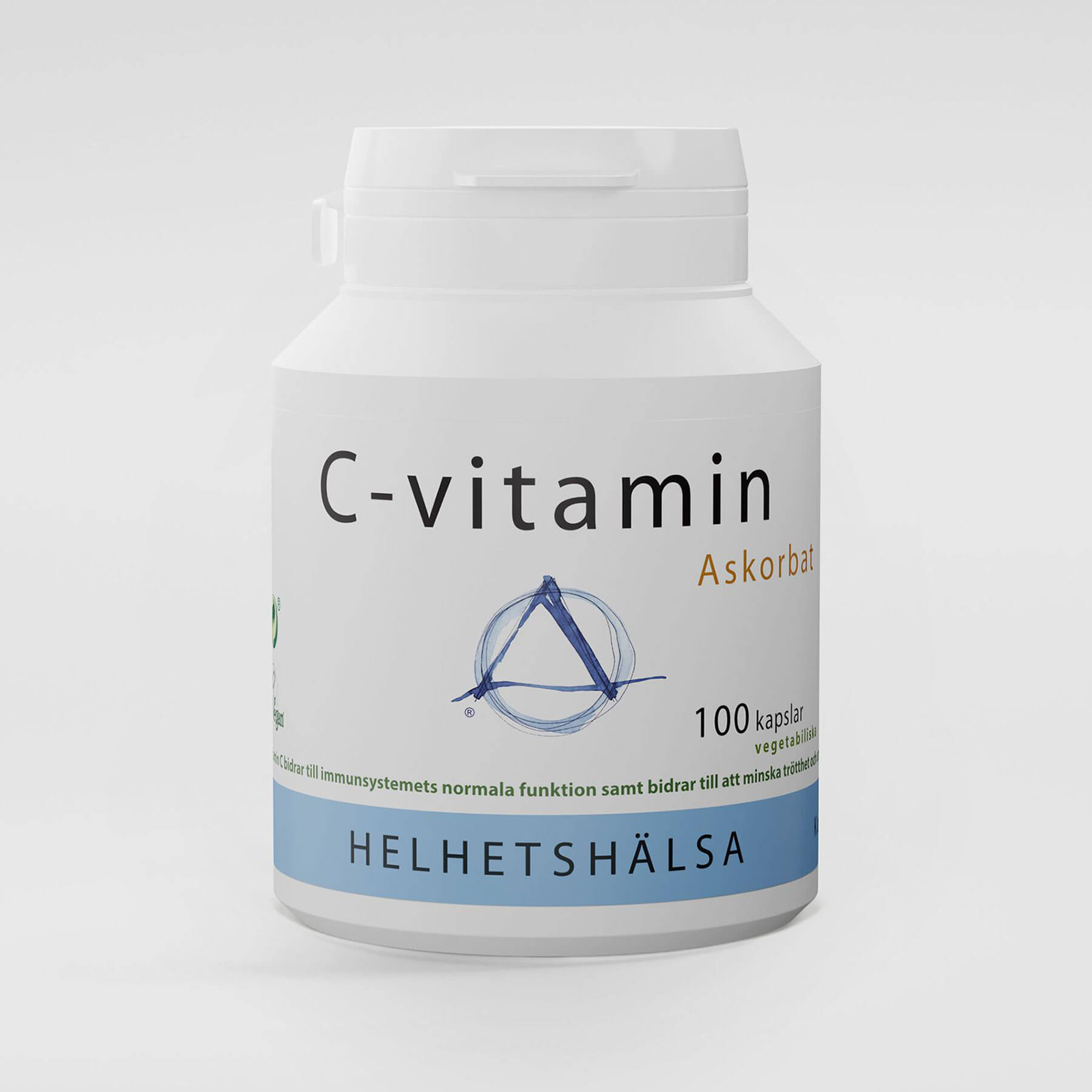 C-vitamin (askorbat) i vegetabiliska kapslar. Vitaminet är pH-neutraliserat med hjälp av kalcium och är skonsamt för magen.