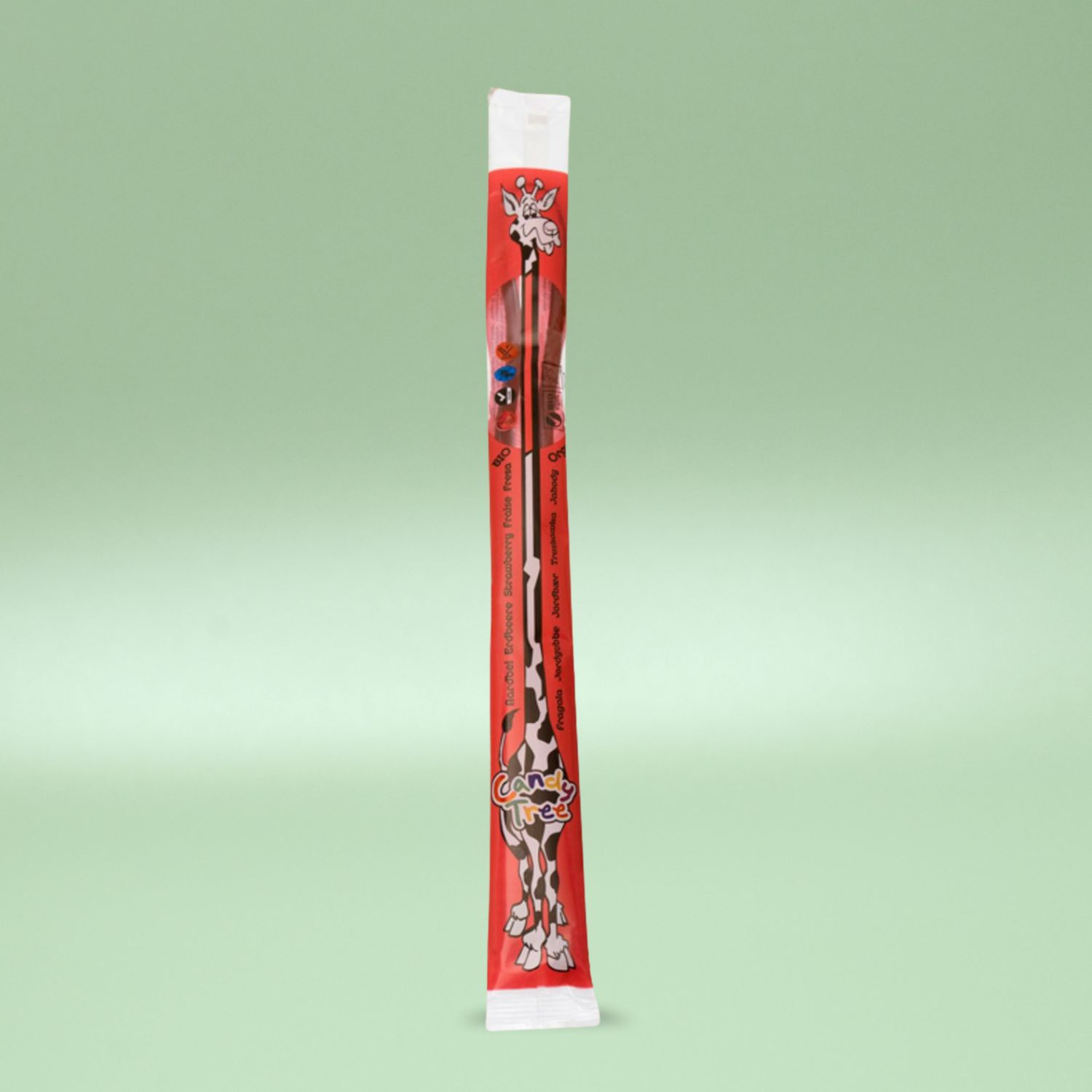Candy Tree Strawberry Laces Giraffe erbjuder en unik upplevelse med mjuk jordgubbssmak. De är veganska, glutenfria och tillverkade med minst 95 % ren frukt.