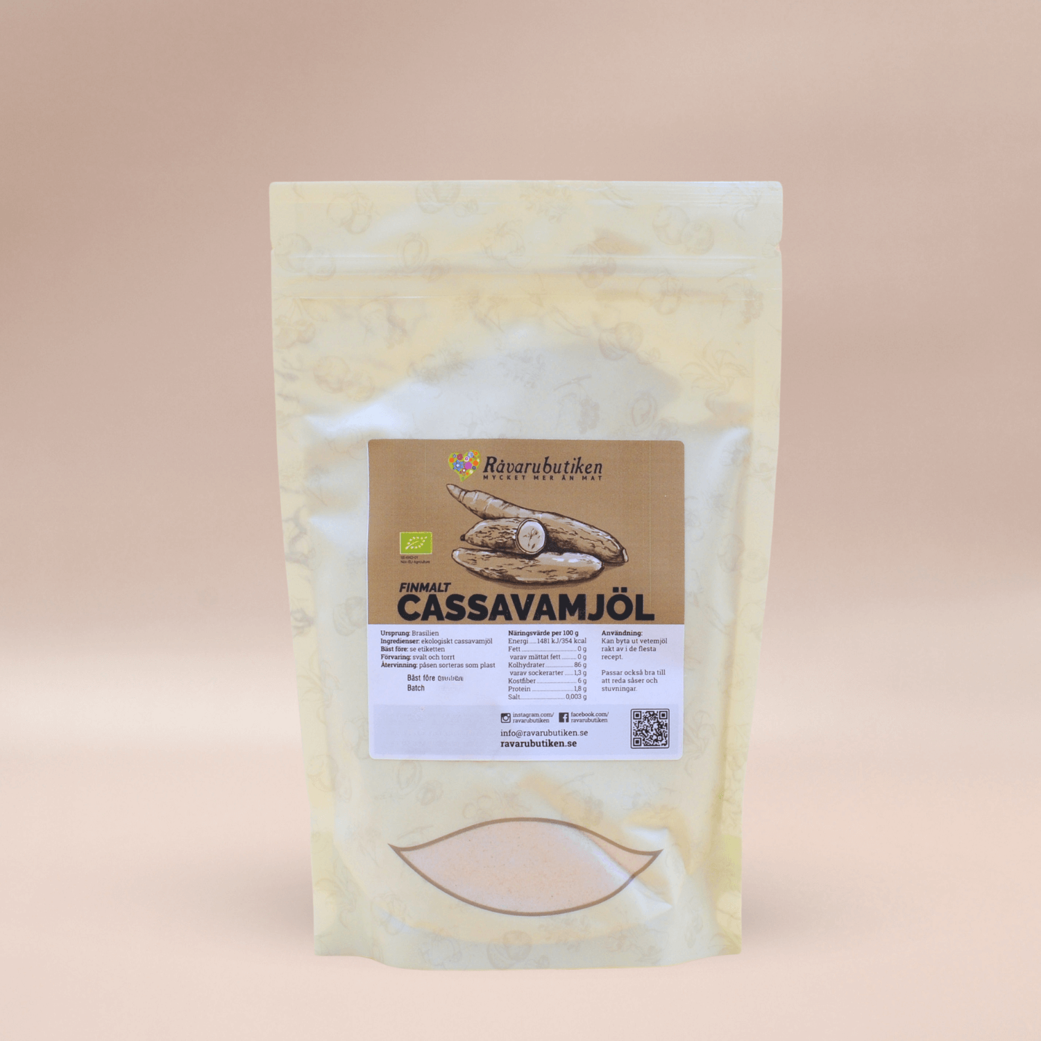 Cassavamjöl är ett naturligt glutenfritt mjöl som framställs av roten från cassavaväxten, även kallad maniok eller yuca. Växten är en buskartad ört som bildar stora rotknölar och odlas i många delar av världen där den är ett viktigt baslivsmedel, särskilt i Afrika, Asien och Sydamerika.