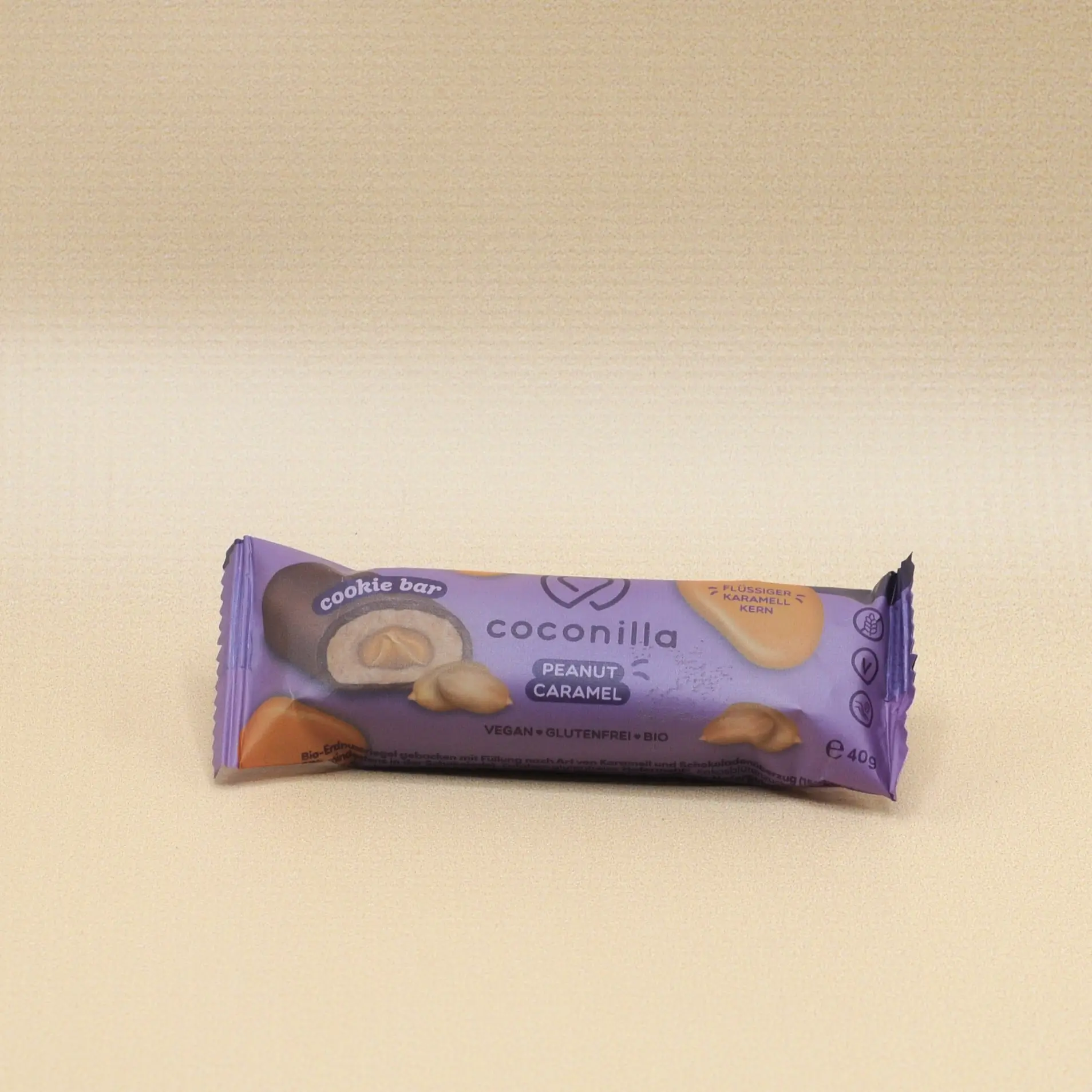 Ingredienser: Glutenfritt HAVREMJÖL, Kokosblomsocker, JORDNÖTSSMÖR (12,5%), Kakaosmör, Kokosolja, Risirispulver, Risirap, glutenfritt havrepulver, Kakaomassa, MANDEL, Havssalt.