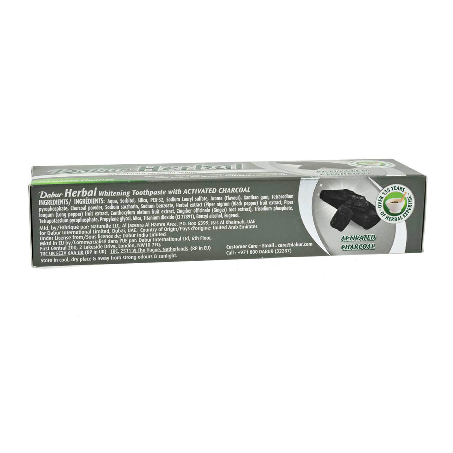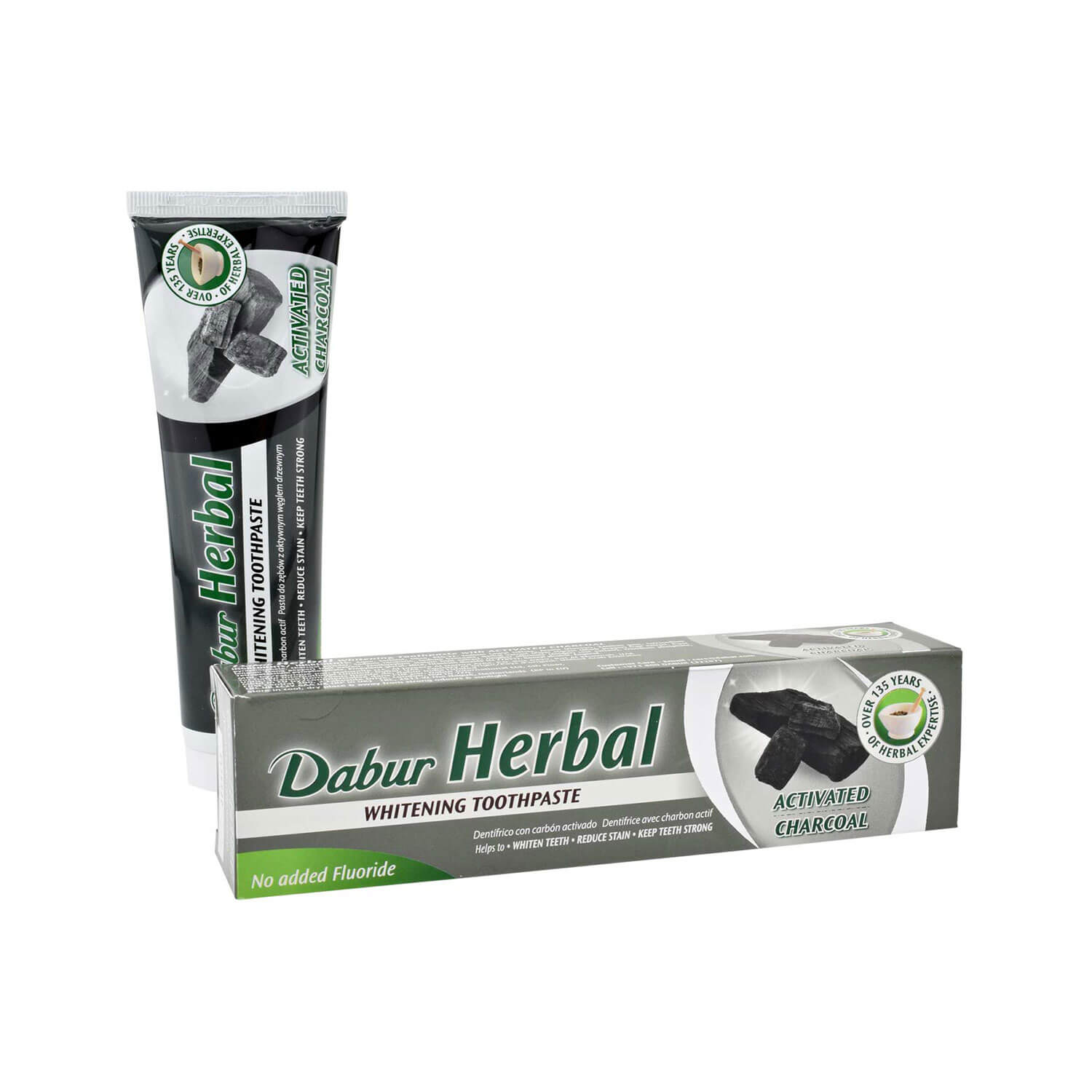 Beskrivning: Aktivt kol har en unik renande och blekande effekt på tänderna utan att skada dem samtidigt som denna tandkräm har en god och frisk känsla i munnen. Daburs örtbaserade tandkrämer är både effektiva och goda. Tandkrämen är helt vegetabilisk och har inget tillsatt fluor..