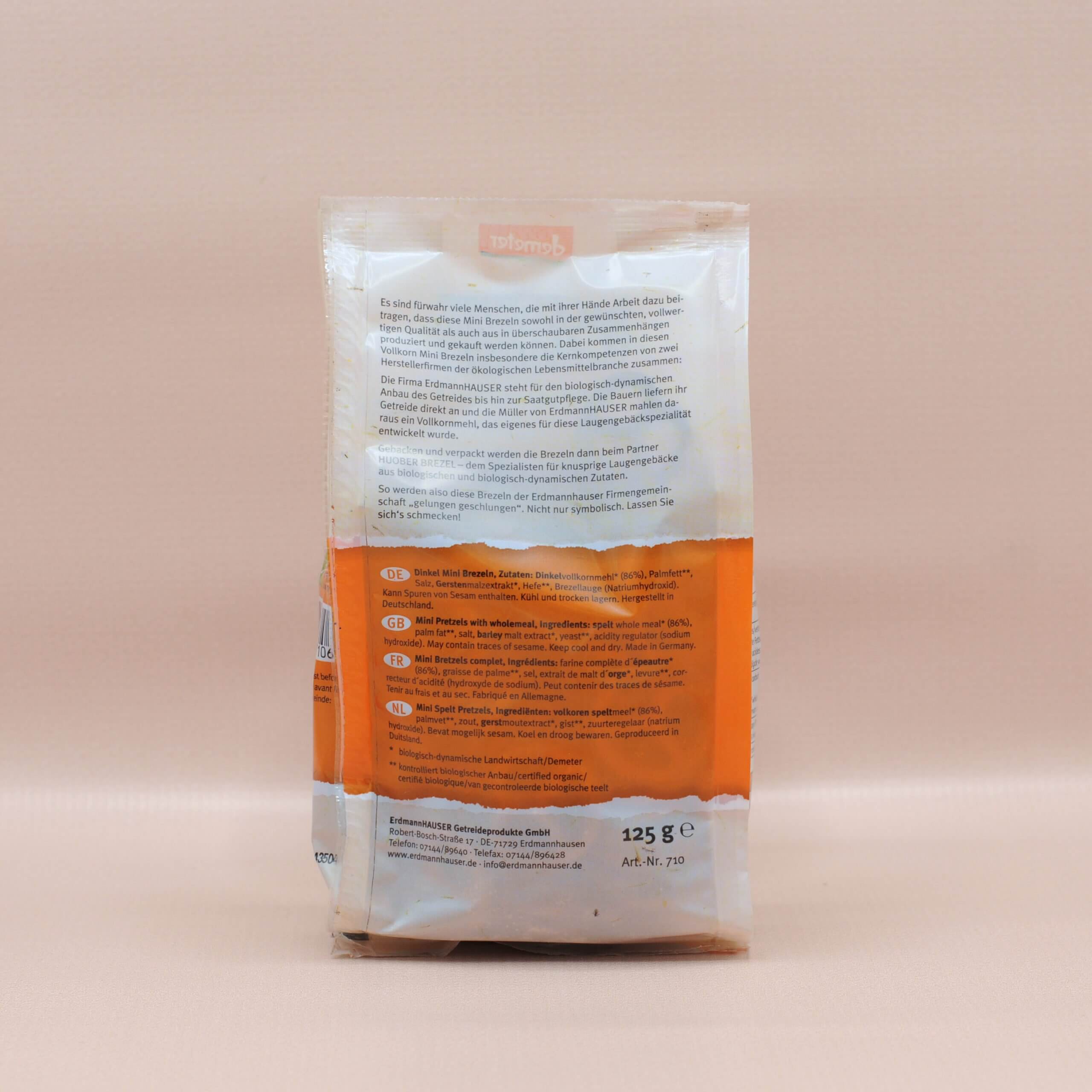 fullkorns dinkelmjöl (86%), palmfett, salt, kornmaltextrakt, jäst, kringellut (natriumhydroxid). Kan innehålla spår av sesam. Förvara svalt och torrt.