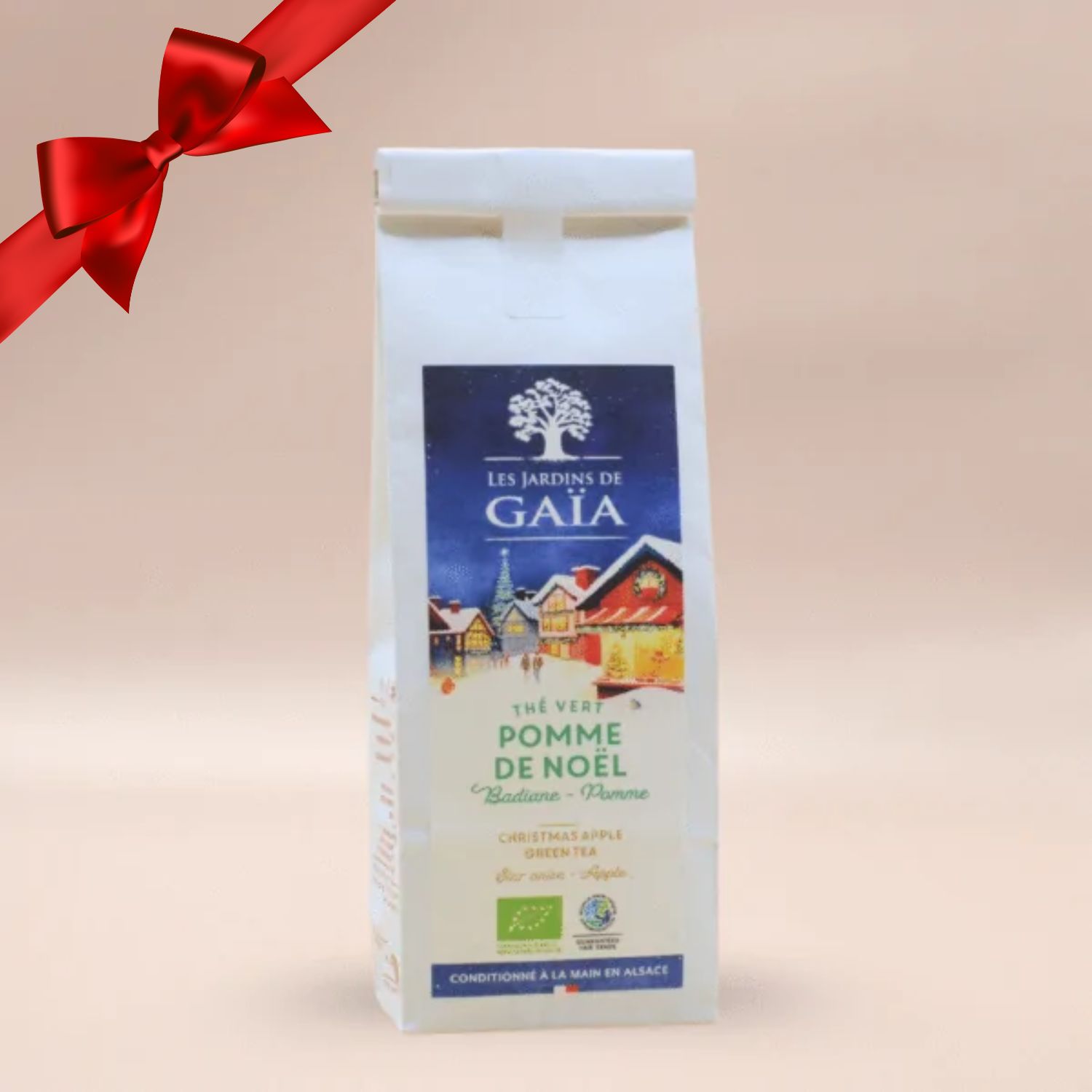 Upptäck en festlig och förförisk teskapelse där klara toner av rött äpple möter den värmande värmen från stjärnanis. Basen är ett mjukt, ekologiskt grönte som omsorgsfullt smaksatts för att lyfta fram det fruktiga, något syrliga äpplet tillsammans med anisens karaktär – en lika elegant som oväntad kombination. Smakprofil: Friska och klara äppelbitar i en rund, lätt syrlig ton. Varm, subtil anis som ger en orientalisk touch utan att dominera. En balanserad gröntekaraktär som binder ihop smakupplevelsen och ger en mjuk, aromatisk kropp. Tillfällen: Perfekt att njuta av som en vinter- eller kvällste, men minst lika smakfull som kall dryck till dessert eller glass. Matcha med vanilj- eller vit choklad, päron eller äppelsorbet för en extra lyxig kombination.