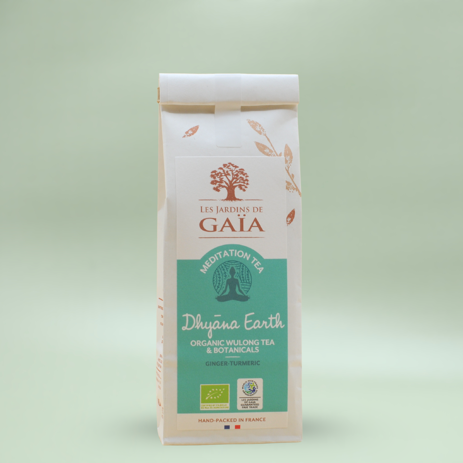 Dhyāna Earth – Ekologiskt wulong-te med ingefära & gurkmeja Ett jordnära och harmoniskt te som bjuder in till stillhet och balans. Dhyāna Earth kombinerar ett elegant wulong-te med värmande ingefära och gyllene gurkmeja – en kraftfull blandning som väcker sinnena och förankrar kroppen. De fruktiga tonerna från druvkärnor och nypon rundar av smaken med mjuk fräschör, medan en lätt kryddighet dröjer kvar i eftersmaken. Smakprofil: Rund och fyllig wulong-bas med naturlig sötma. Värmande toner av ingefära, gurkmeja och svartpeppar. Fruktiga och jordiga inslag från druvkärnor och nypon. En balanserad kopp med rogivande karaktär. Passar till: Perfekt för lugna stunder, meditation eller som en värmande dryck efter måltid. Njut gärna tillsammans med mörk choklad eller nötter för en djupare smakupplevelse.