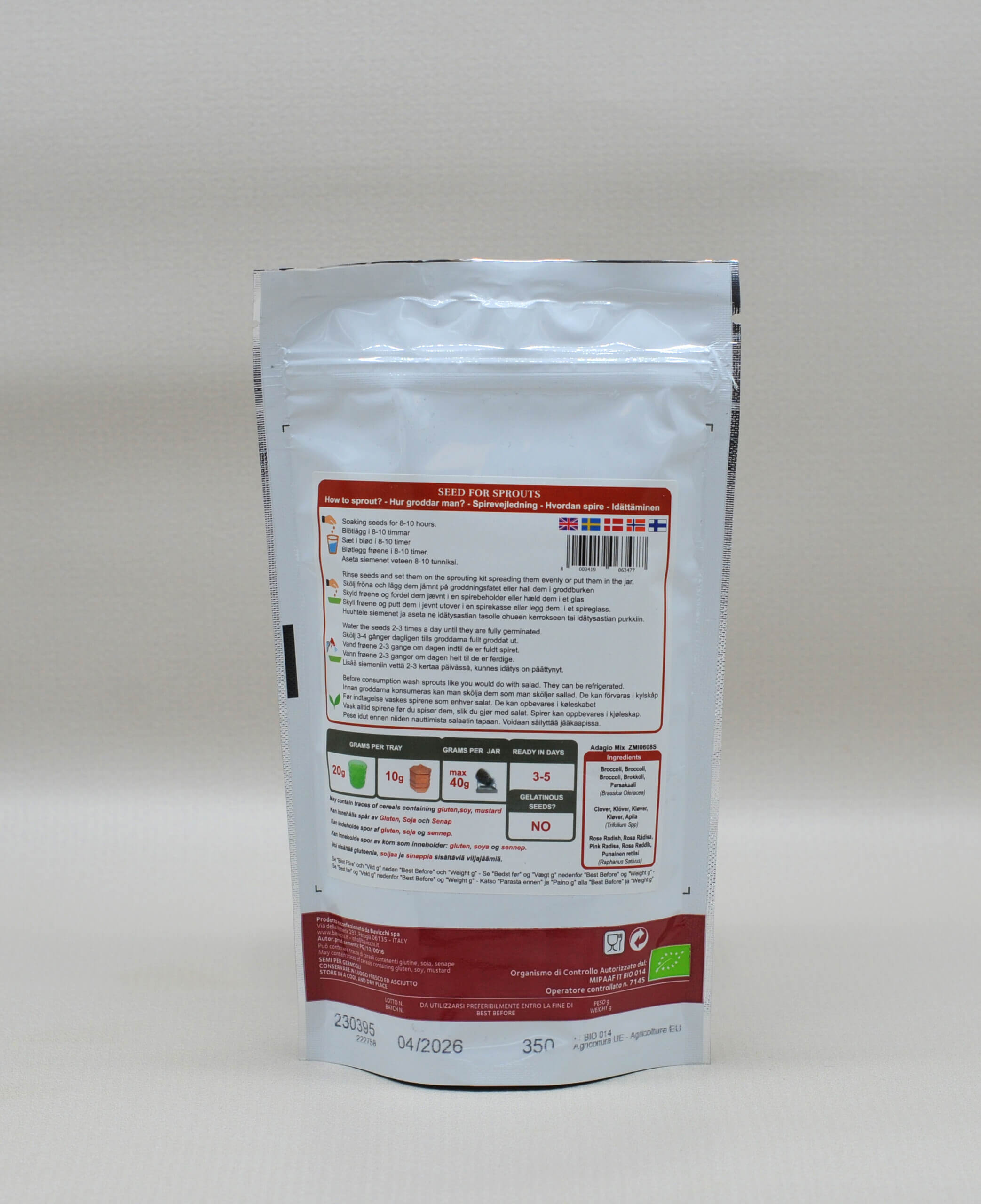 I denna kraftfulla och supernyttiga blandning hittar du tre olika fröer som ger groddar med olika smak