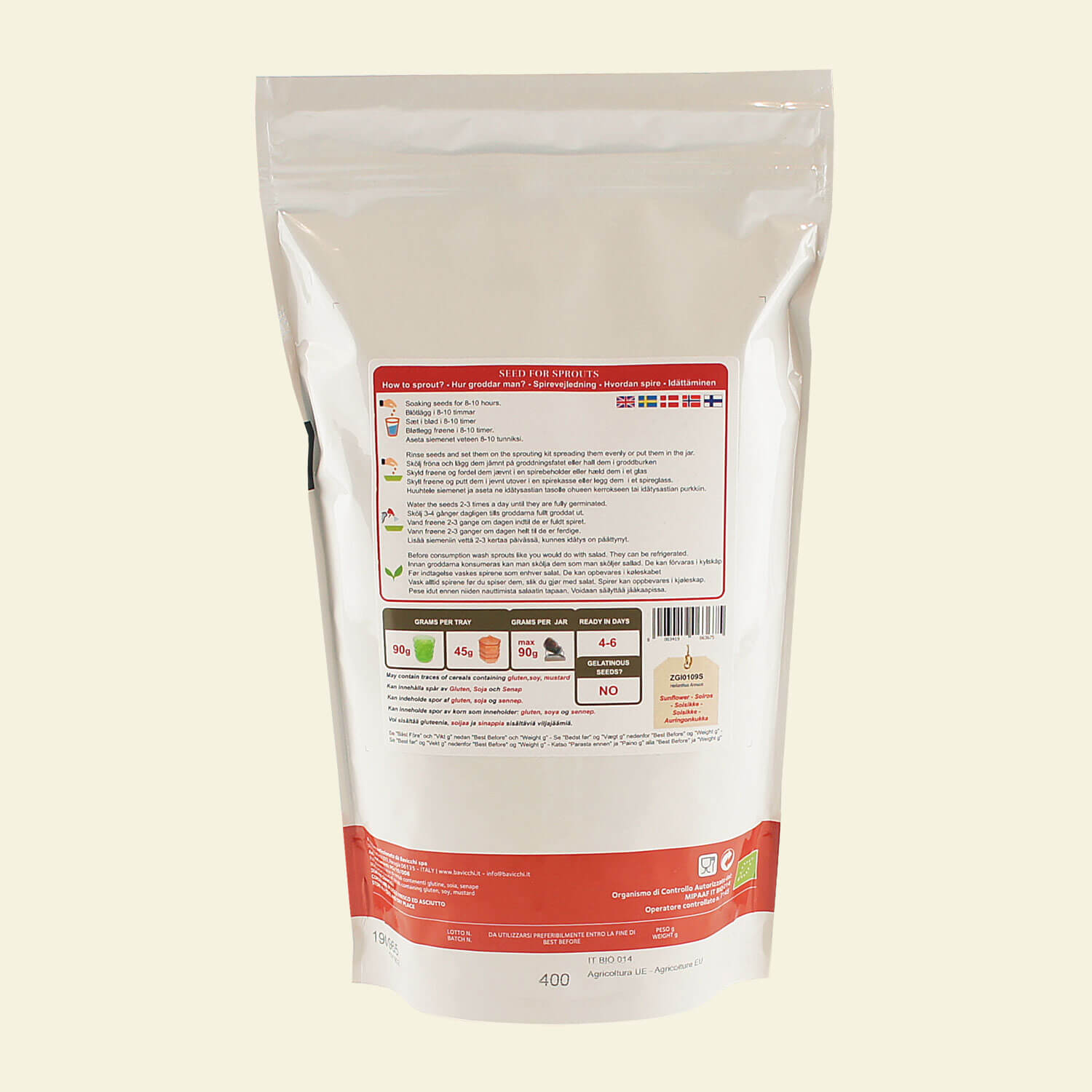 Ekologiskt solrosfrö med skal från italienska GEO, ger underbart fina och milda skott!