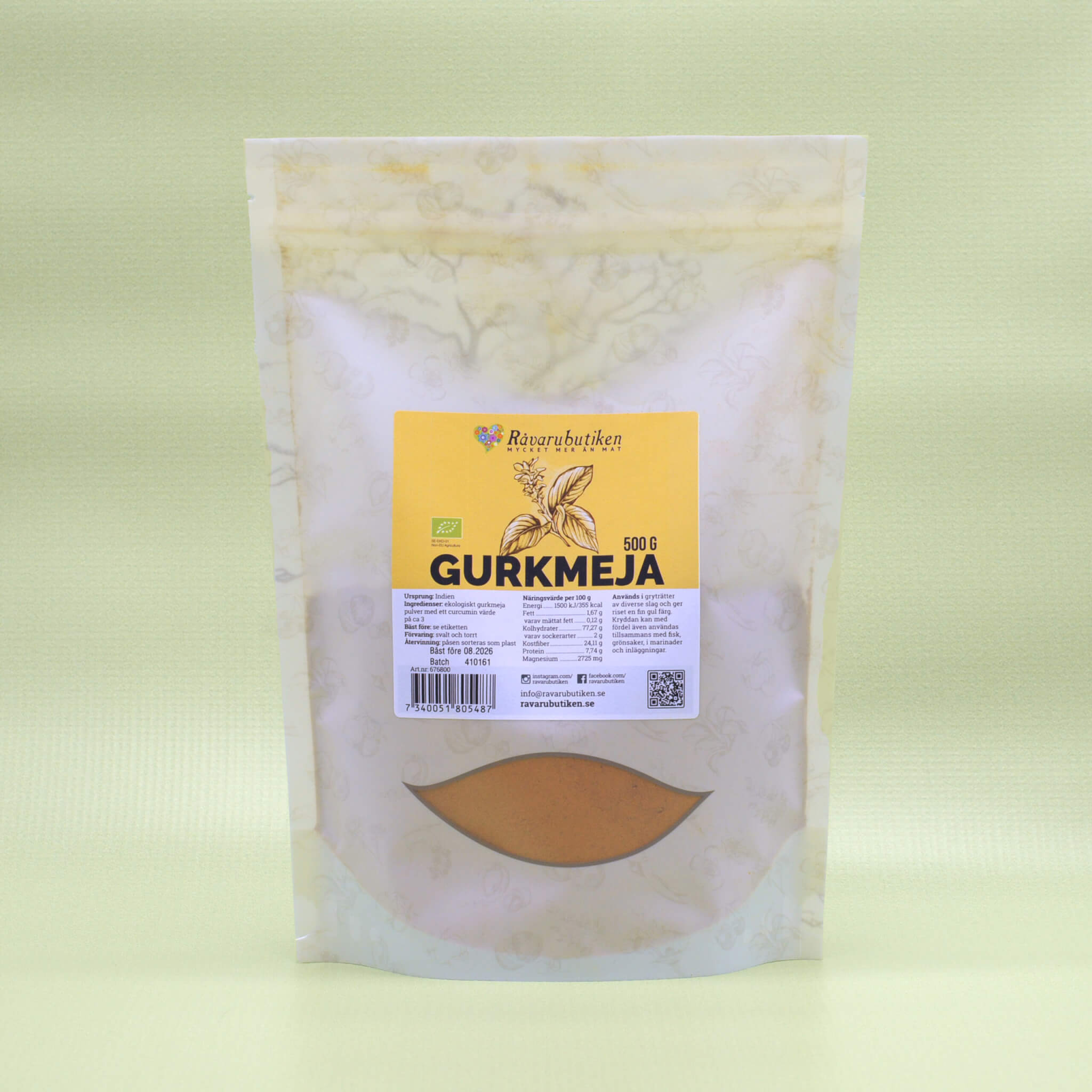 Ekologisk gurkmeja i finmalet pulver med mild, lätt bitter smak. En klassisk krydda som används i både matlagning och dryck.