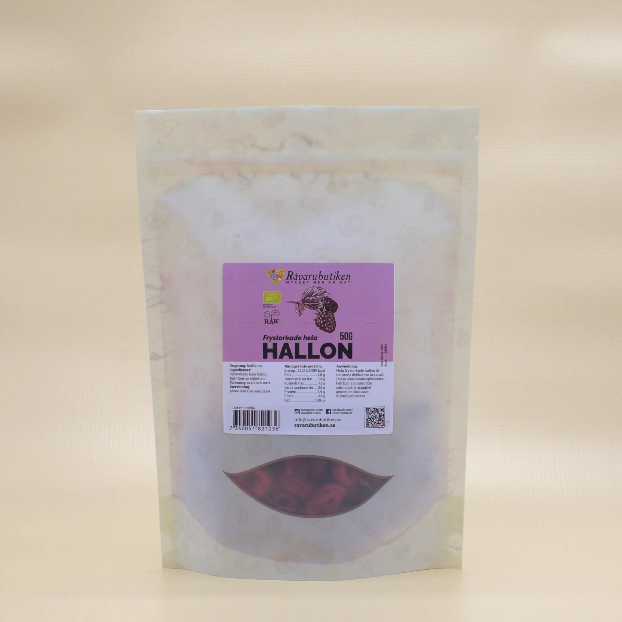 Ingredienser: frystorkade hela hallon