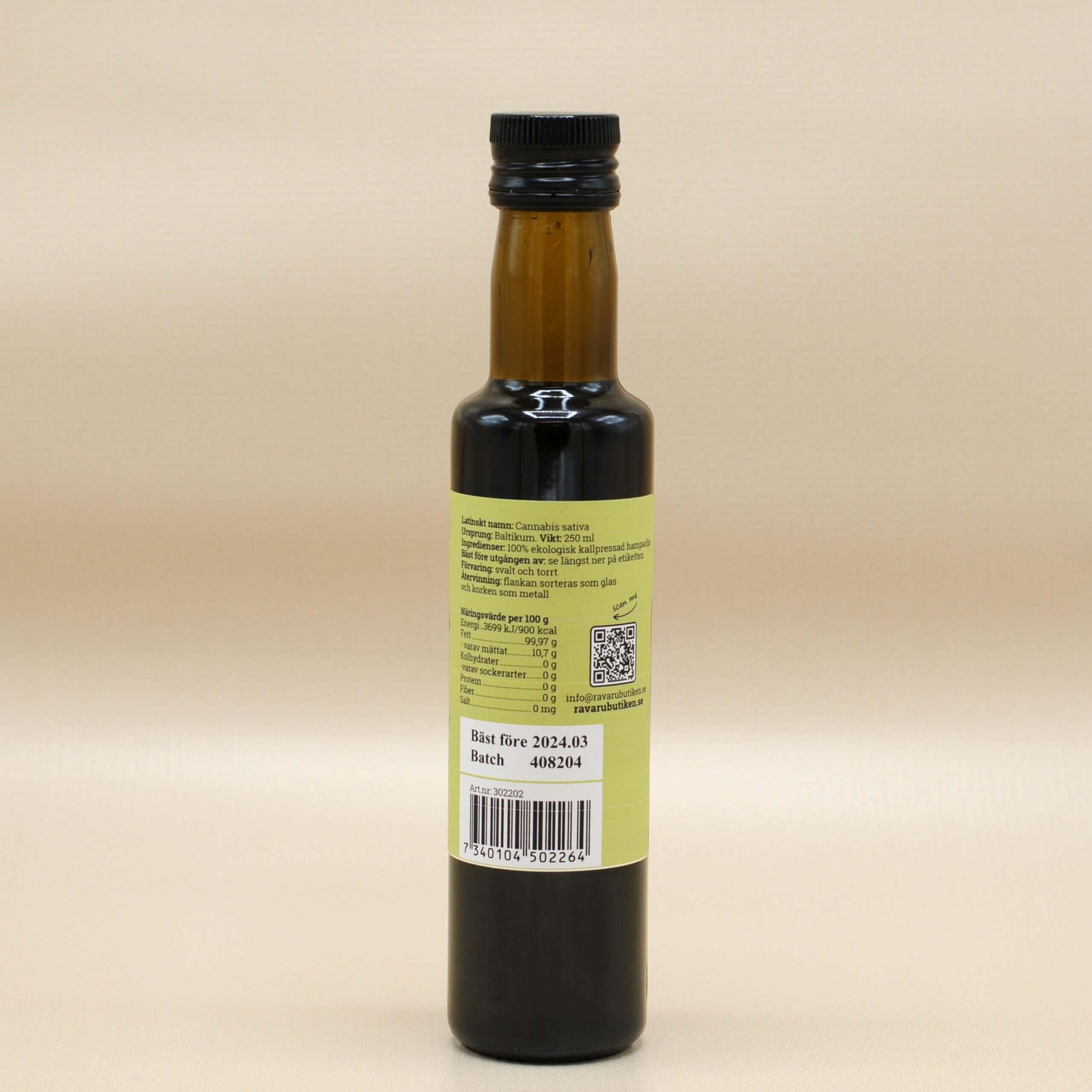 Ekologisk och rå hampaolja från första pressningen. En olja med mild och nötig smak som passar bra i många olika rätter.