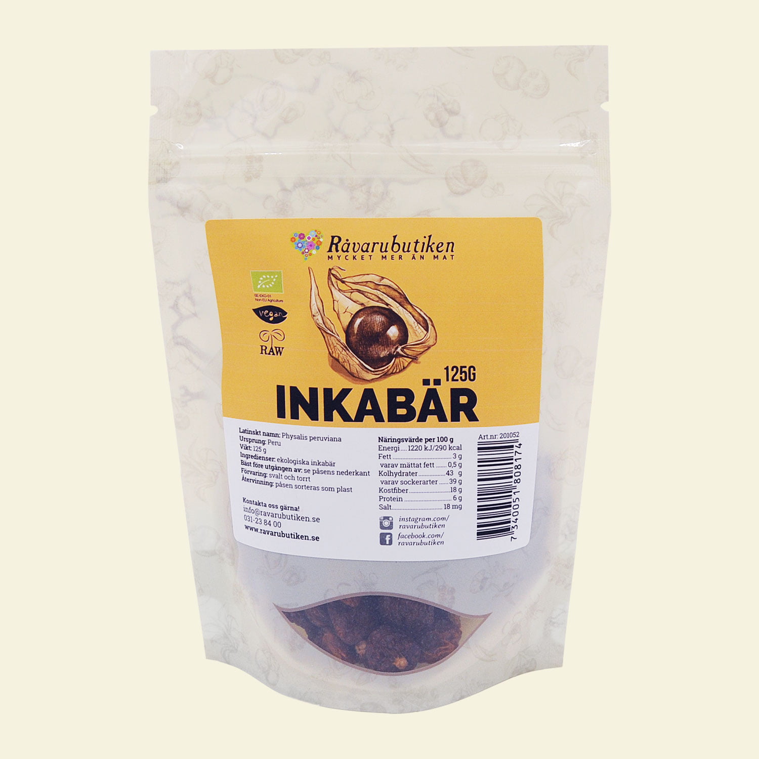 Ekologiska inkabär, även kallade peruansk physalis eller golden berries, är små orange bär med en frisk och syrlig smak. De odlas ursprungligen i Sydamerika, men förekommer idag även i andra tropiska och subtropiska områden.