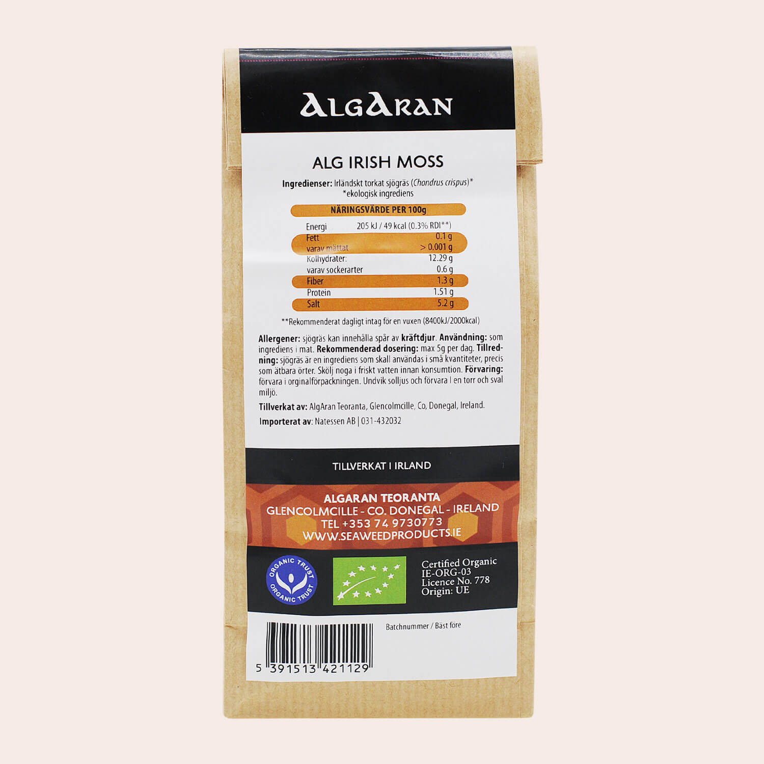 Innehåll: Torkad ekologisk Irish moss / karragenan (Chondrus crispus).
