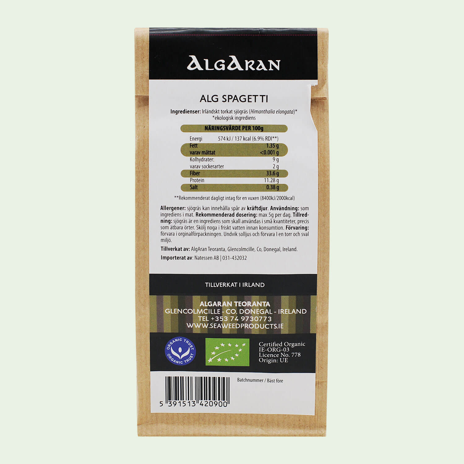 Vad innebär ekologiskt certifierade algprodukter? Den ekologiska certifieringen kräver att alla producerade alger är fri från föroreningar och genomgår regelbunden laboratorieanalys vilket skall säkerställa att algprodukterna är hälsosamma och säkra att äta.