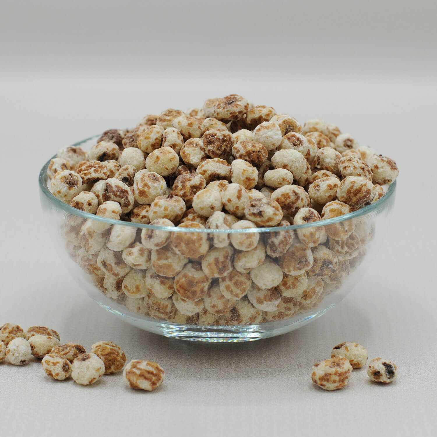 Ekologiska jordmandlar, även kallade chufa eller tigernötter, är små rotknölar med en naturligt söt smak som påminner om en blandning av mandel och kokos. De har en fast, något seg konsistens som blir mjukare vid blötläggning.