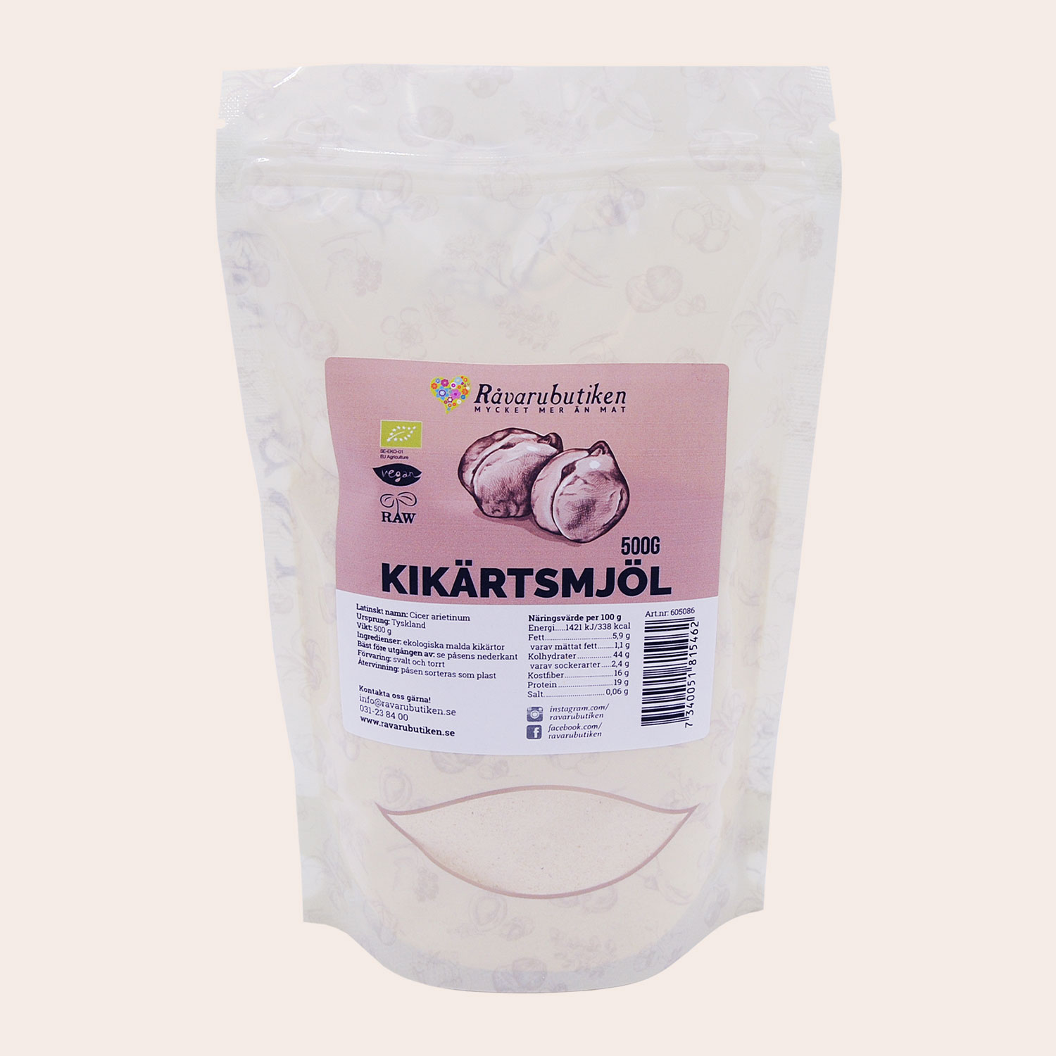 Ekologiskt kikärtsmjöl – ett naturligt glutenfritt mjöl med ljusgul färg och lätt nötig smak. Perfekt som alternativ till vetemjöl i både matlagning och bakning.