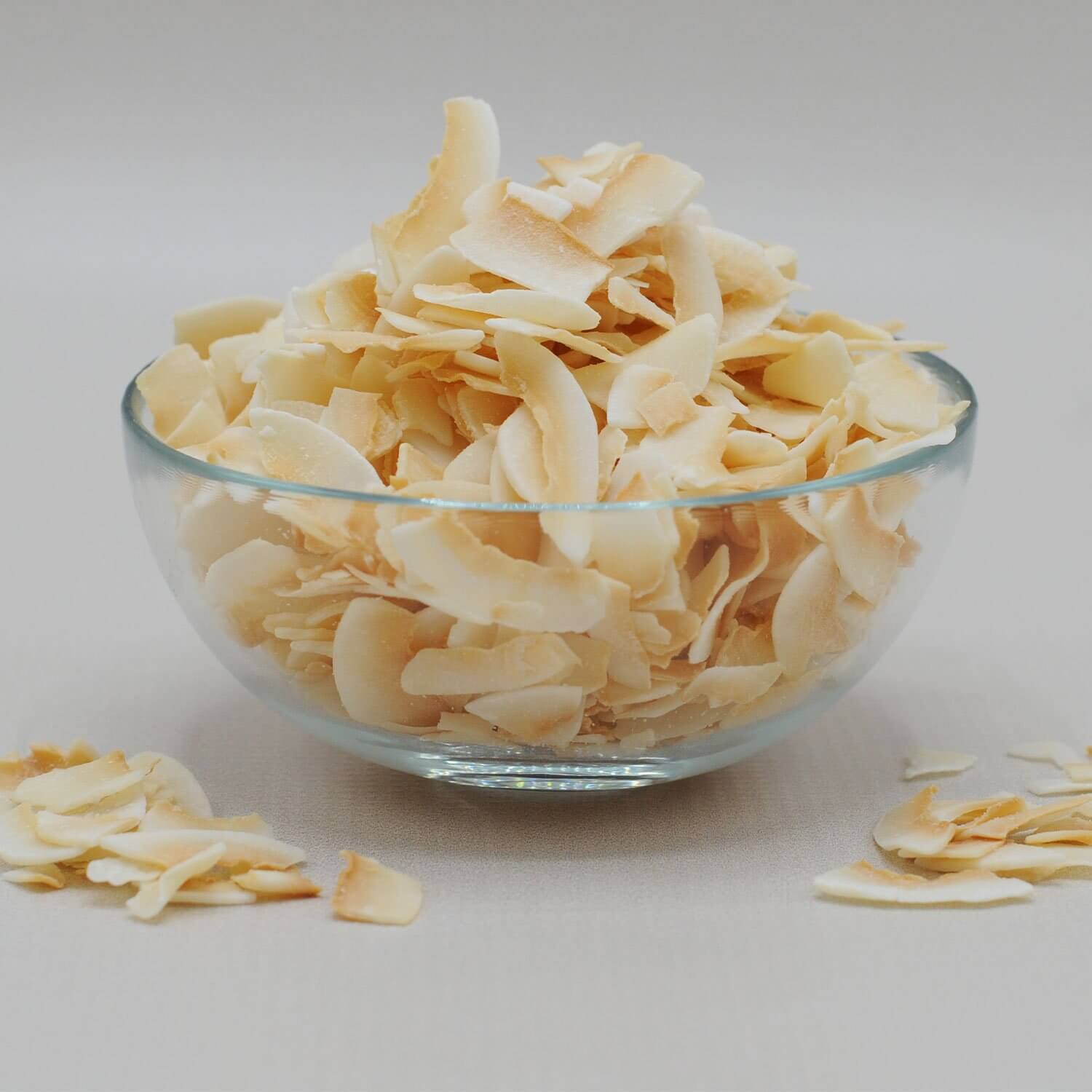 Våra smarriga rostade kokoschips tillverkas genom att färskt kokoskött skivas i tunna strimlor, varefter det rostas försiktigt för att få en perfekt avvägd smak av kokosarom, krämighet och den rostade tonen.
