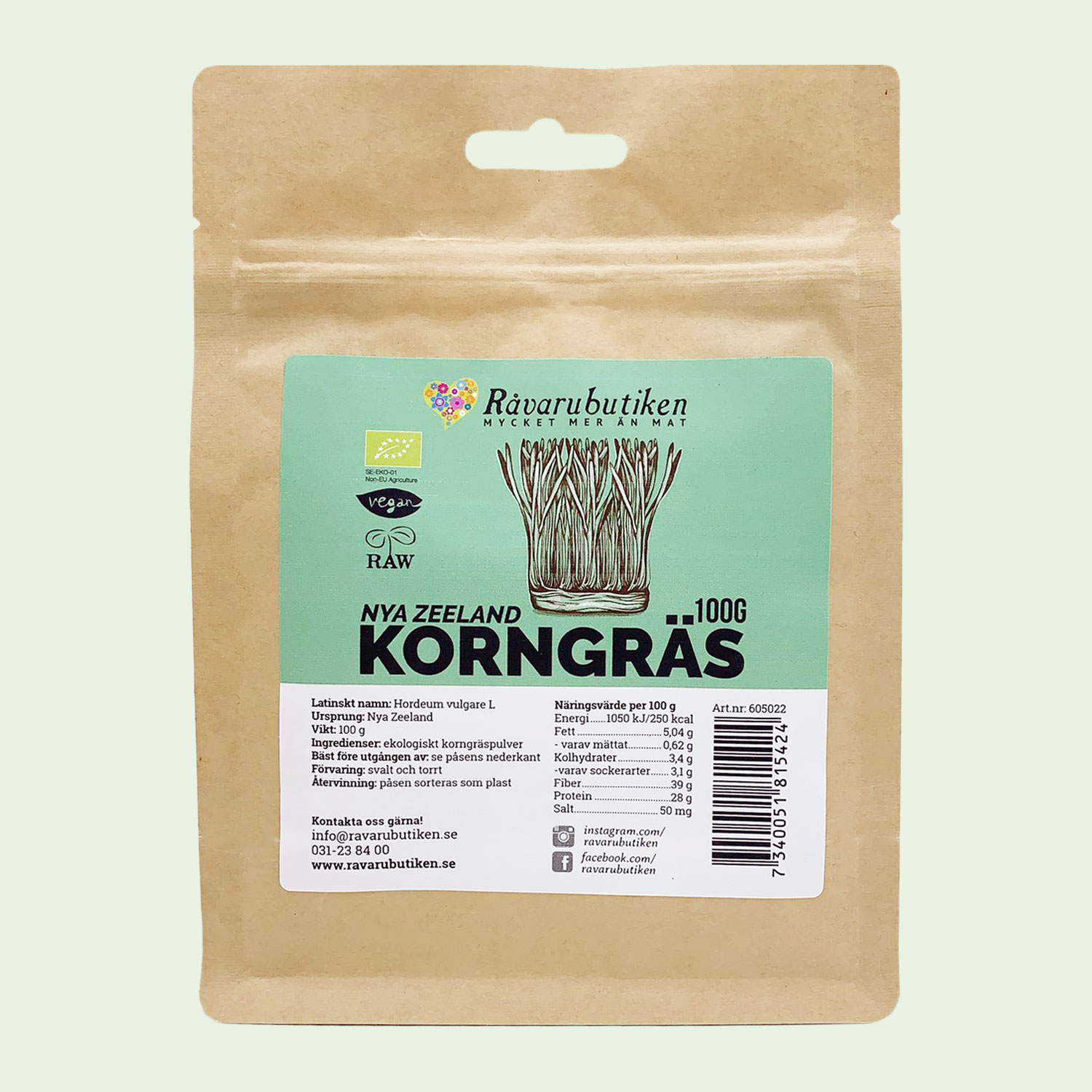 Korngräs Pulver Nya Zeeland EKO 100g