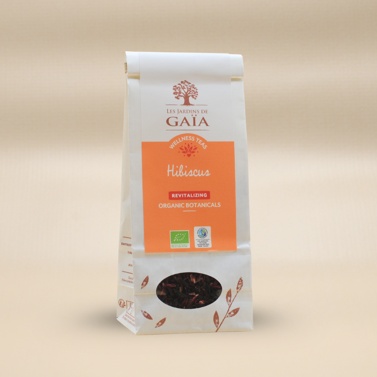 Upptäck den friska och blommiga smaken av Les Jardins de Gaïa Hibiskus Te EKO – en ekologisk infusion med djupt rubinröd färg och fyllig smak. Blommorna är varsamt skördade av småskaliga afrikanska odlare och är källan till den berömda drycken "bissap", en traditionell infusion med intensiv färg och arom.