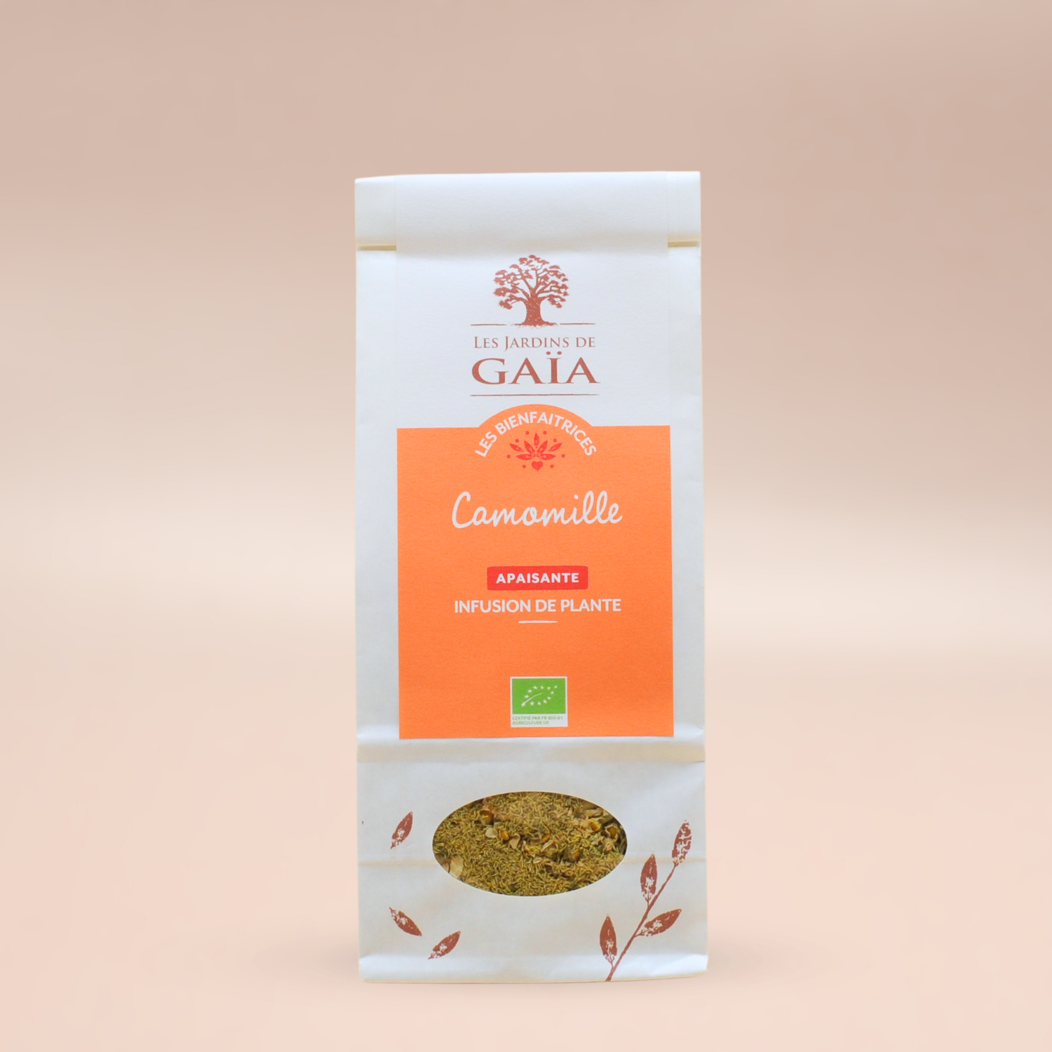 Les Jardins de Gaïa Kamomillblommor Te EKO är en mjuk och behaglig infusion som uppskattas för sin milda blommiga smak och lugnande egenskaper. Kamomill har länge varit en favorit för sina naturliga kvaliteter och är en utmärkt följeslagare i vardagen. Detta ekologiska te är ett måste i varje tehylla – perfekt för stunder av avkoppling.