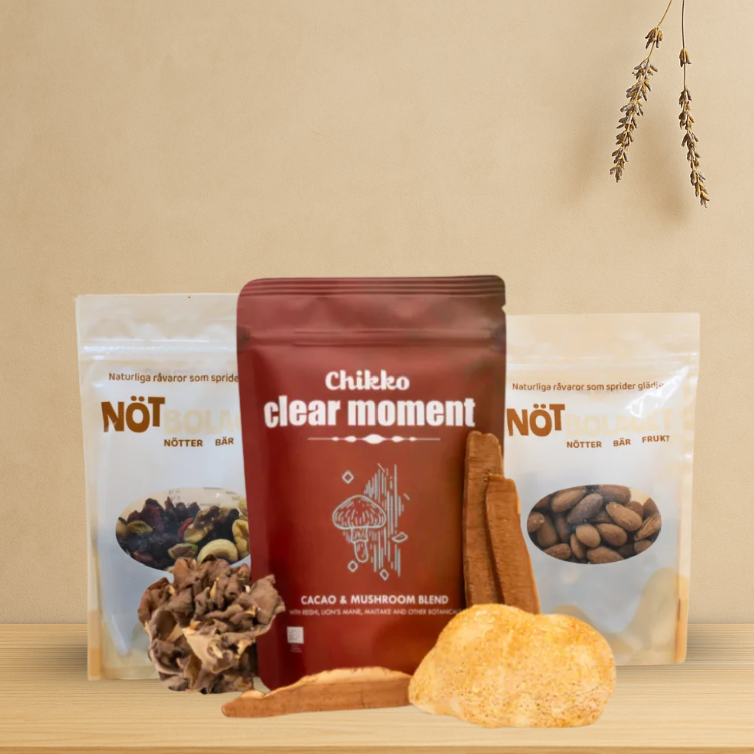 Chikko Clear Moment hjälper dig varva ner och fokusera, medan rostade mandlar och en raw frukt- & nötmix ger kroppen näring och balans.