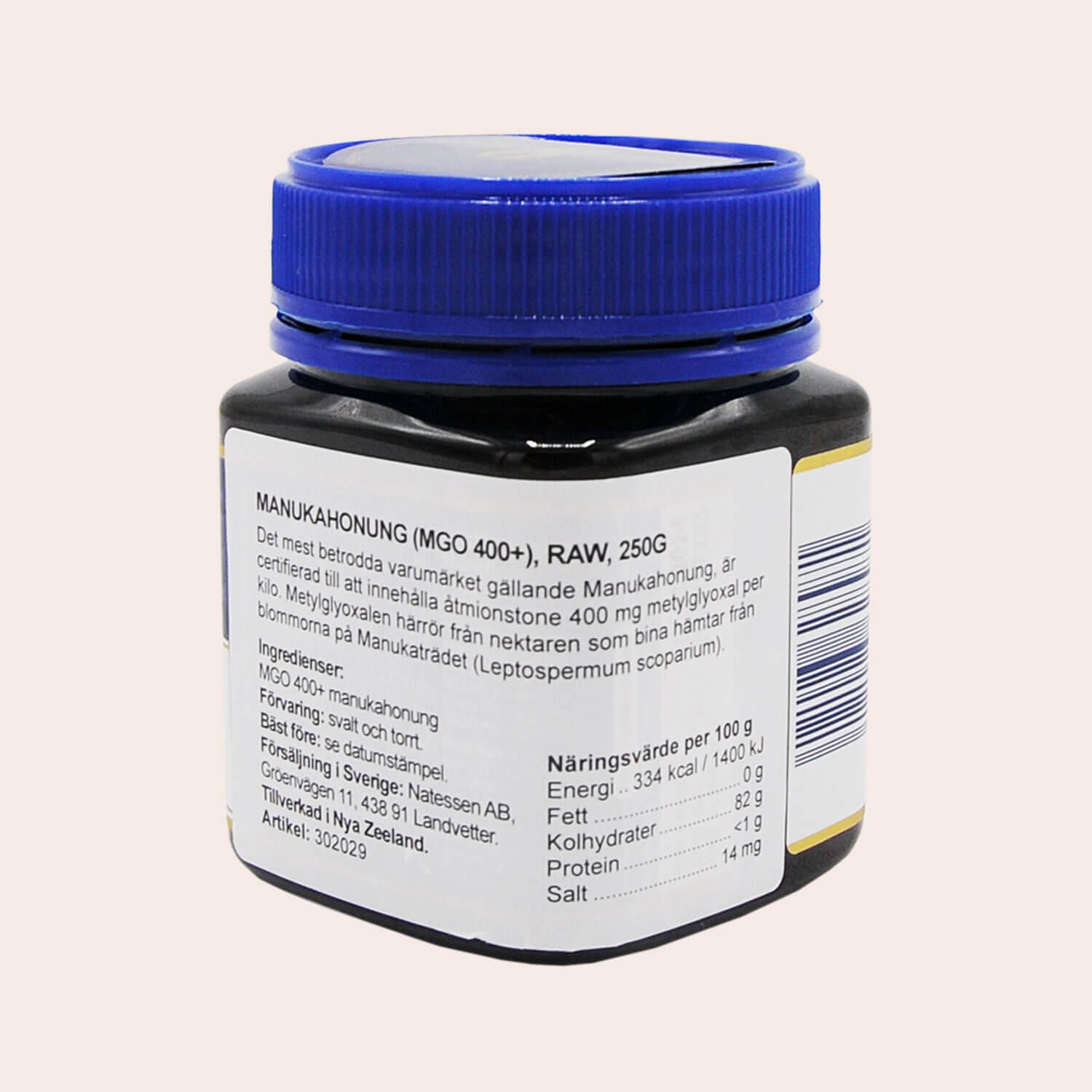MGO™ 400+ Manuka Honey från Manuka Health, det mest betrodda varumärket gällande Manukahonung, är certifierad till att innehålla åtmionstone 400mg metylglyoxal per kilo. Metylglyoxalen härrör från nektaren som bina hämtar från blommorna på Manukaträdet (Leptospermum scoparium).