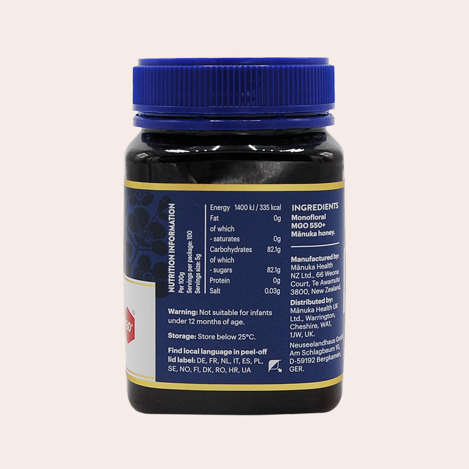 MGO™ 550+ Manuka Honey från Manuka Health, det mest betrodda varumärket gällande Manukahonung, är certifierad till att innehålla åtmionstone 550mg metylglyoxal per kilo. Metylglyoxalen härrör från nektaren som bina hämtar från blommorna på Manukaträdet (Leptospermum scoparium).