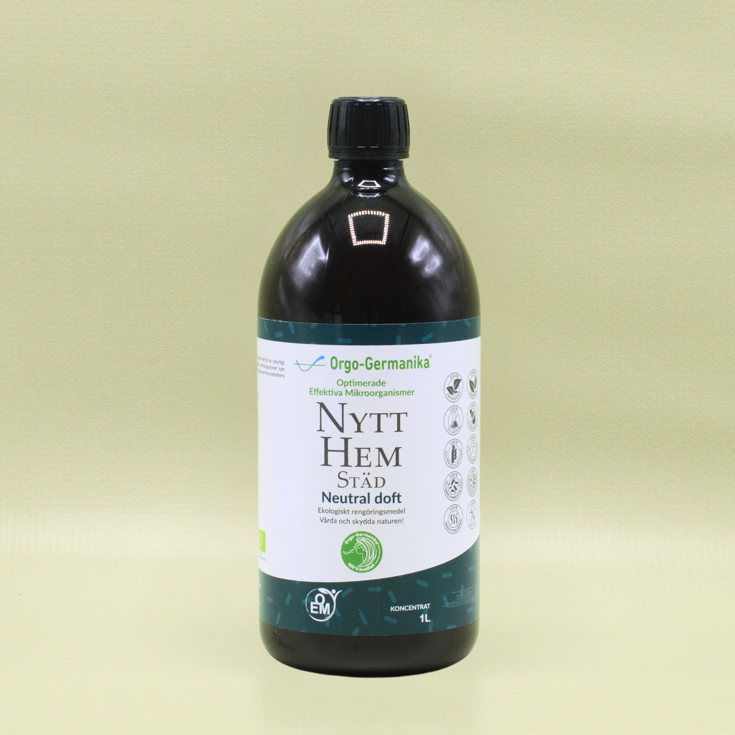 Orgo-Germanika Nytt Hem Städ är ett universellt, ekologiskt rengöringsmedel med effektiva mikroorganismer (OEM) från 16 olika bakteriestammar. Detta mångsidiga medel kan användas på alla typer av ytor, inklusive laminatgolv, kakel, fönster, speglar, plastytor, spisplattor, ugnar och även för bilvård.