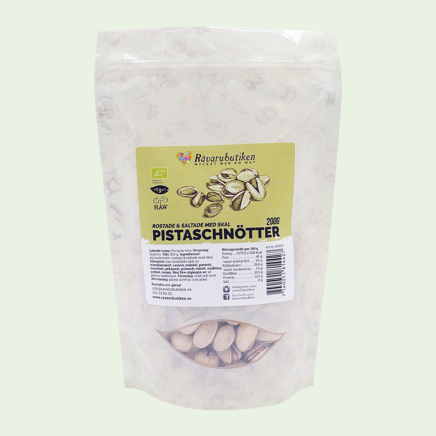 Pistagenötter med skal rostade & saltade EKO 200g
