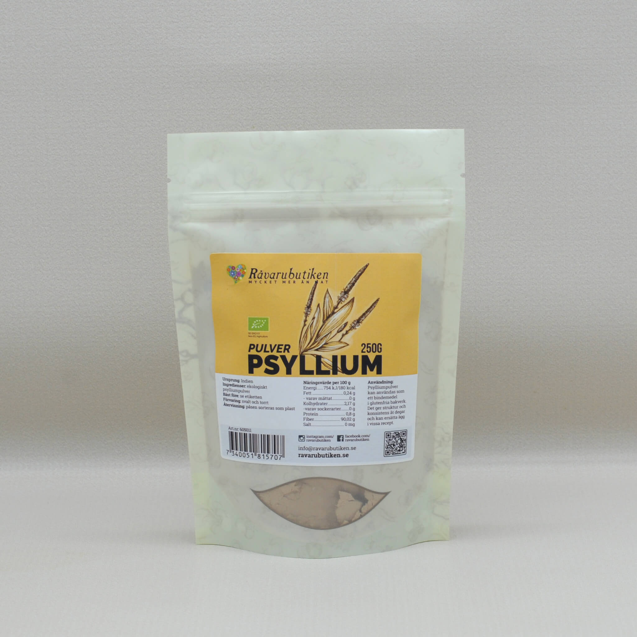 Psylliumpulver framställs av skal från växten Plantago ovata och är ett naturligt pulver som ofta används i bakning och matlagning. Detta psylliumpulver är ekologiskt och består av 100 % rena psylliumskal utan tillsatser.