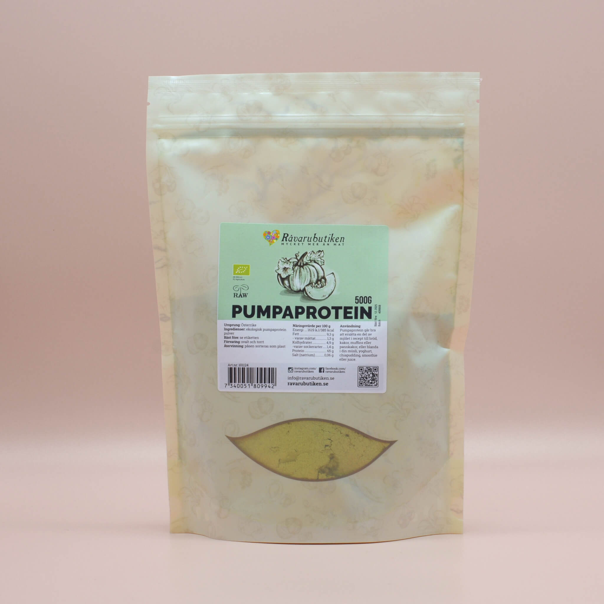 Ekologiskt pumpaprotein är ett växtbaserat proteinpulver gjort av pumpafrön. Med sitt naturligt höga proteininnehåll är det ett smidigt sätt att komplettera kosten och samtidigt tillföra en mild, nötig smak.