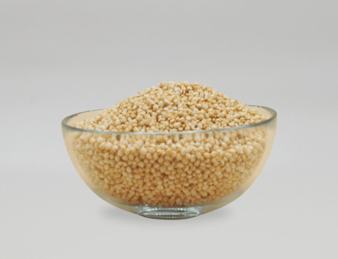 Genom att varsamt rosta vit quinoa tills de ”poppar” så får vi dessa fina quinoapuffar som har en lätt, nötig smak och en luftig, krispig konsistens.