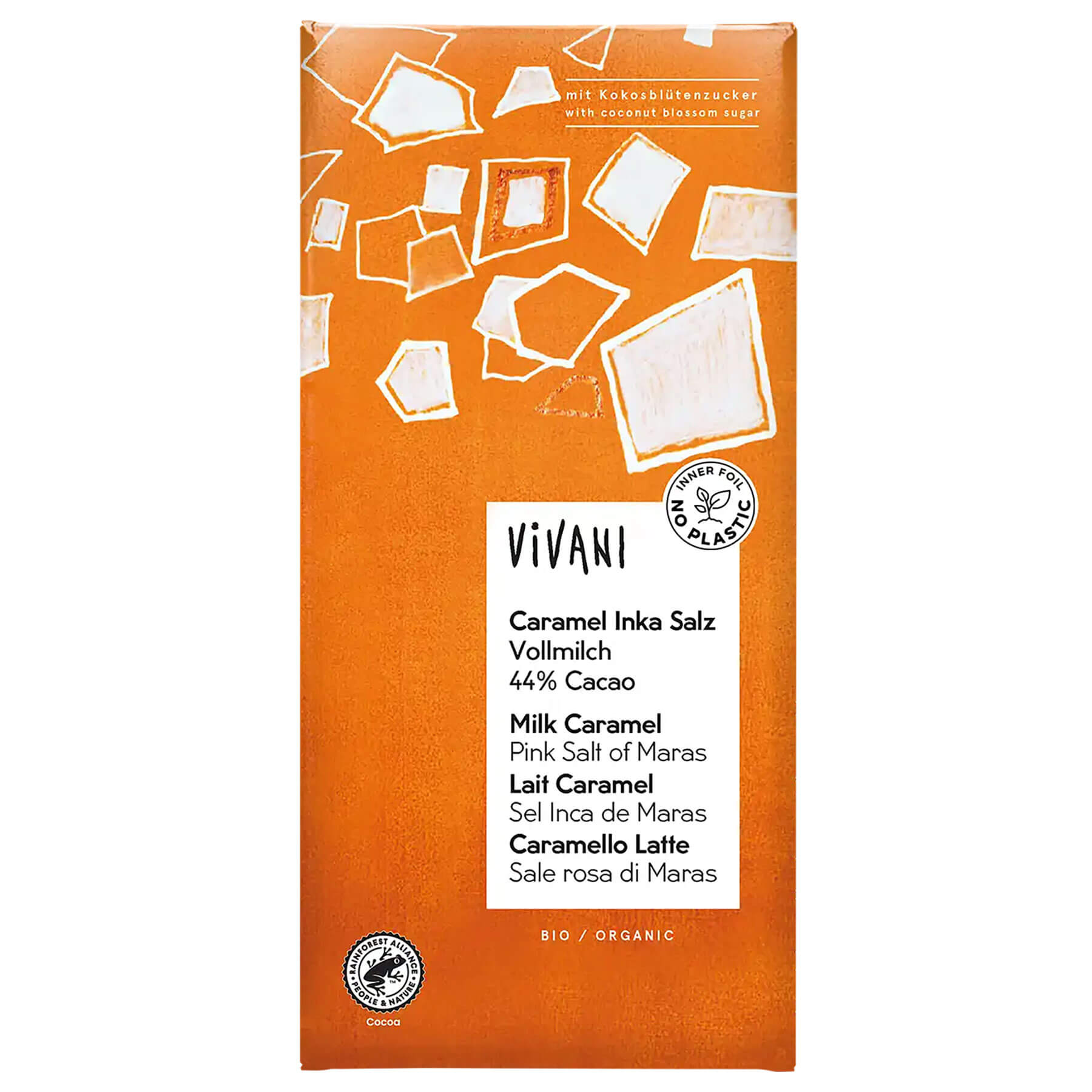 kokosblomstsocker* (32%), kakaomassa*, kakaosmör*, helmjölkspulver*, karamell crisp* (10%) (rårörsocker*, majsglukosirap*, smör rent fett*, havsalt), gräddepulver*, solrosfrö 0,5%, bourbon vanilj* extrakt kakao: minst 44%, mjölkandel: 18%, (*från kontrollerad ekologisk odling, **från kontrollerad bio dynamisk odling)