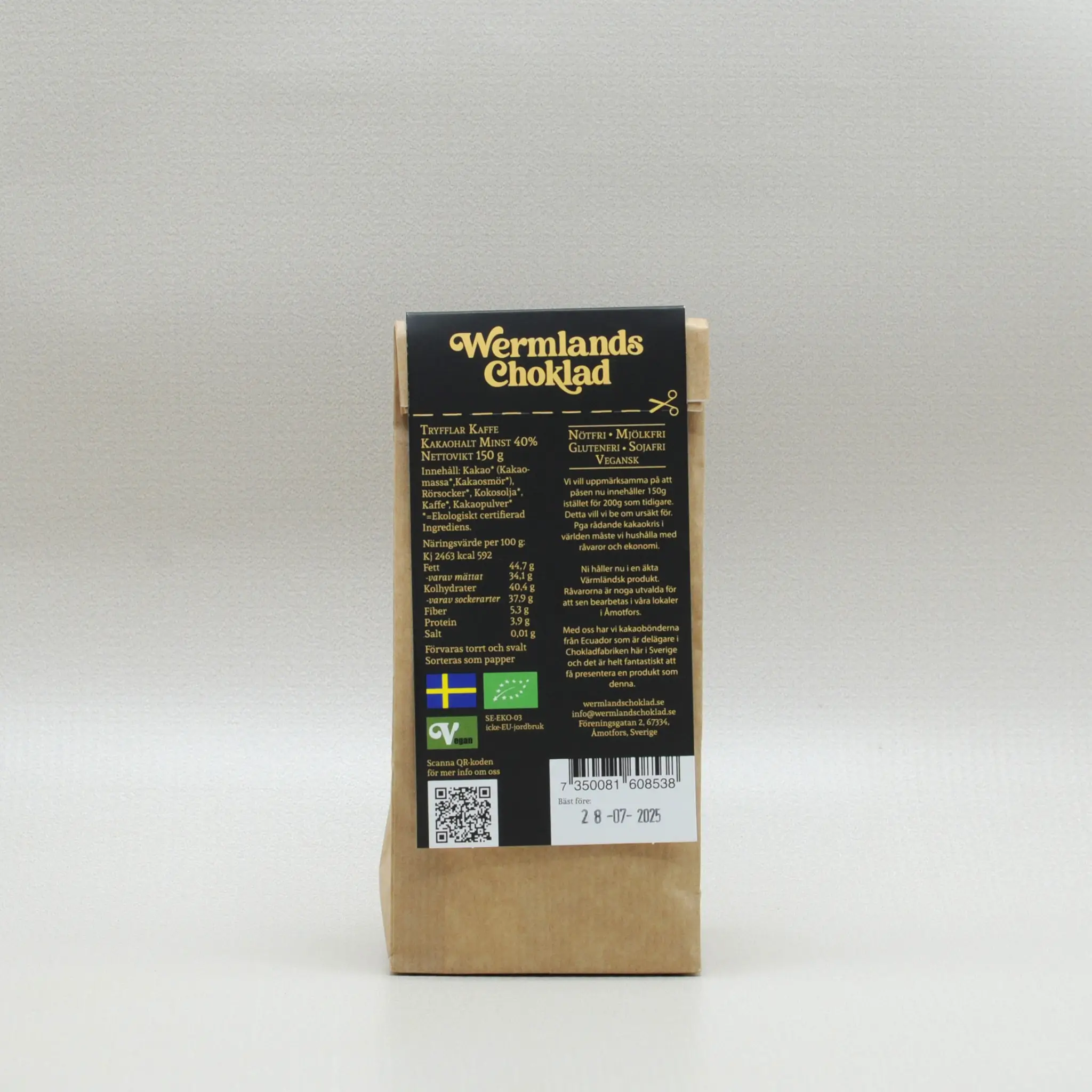 Ingredienserna är få, ekologiska och av hög kvalitet, vilket märks tydligt när man låter kaffetryffeln smälta på tungan. Här hittar du inga onödiga ingredienser!